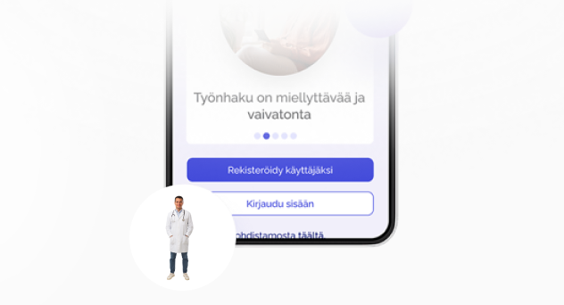 Älykäs tekoälypohjainen työnhakusovellus lääketieteen ammattilaisille ympäri Suomea.